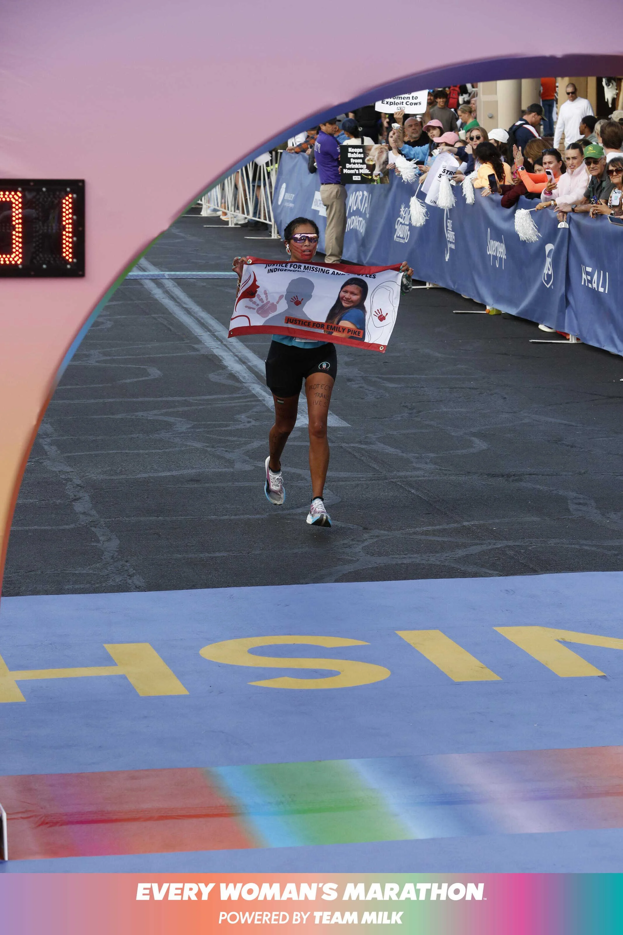 For me, I run in prayer for missing and murdered loved ones like Emily Pike ad Cole Brings Plenty, for their families, for our communities, for our younger and next generations, and holding space for other issues, like protecting our trans kin, immigrant communities, and for the genocide that is continuously happening in Gaza. It’s a privilege to be able to run, to be able to create these spaces with community, to participate, and to just live right now during times that are very scary, uncertain, and triggering for many.