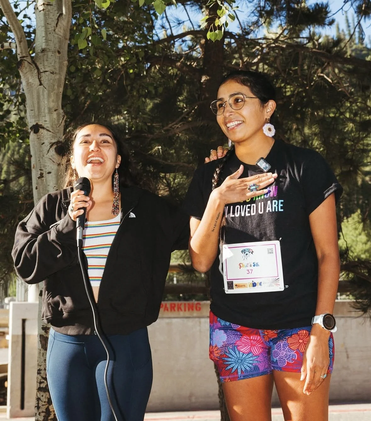 This is year 4 in supporting Indigenous runners at this race, as we co-sponsor them with GU Energy Labs! But this year, was our first time, being able to collaborate with Hoka. Before the panel, we were able to start the morning, bright and early, with the Hoka Shakeout run, where we brought PRIDE into it, created a spotlight to hear from Rising Hearts, Cal Calamia, and Lauro Silva of Tierre Libre Run. We were also guided through connection and breathework with Lex, our Programs Coordinator, to help set the tone and energy in a good way with community. Then, we were off for the 4 miles! And of course, we got a lot of love for our shirts, “I HOPE U KNOW HOW LOVED U ARE” so if you want to support who made them, visit Classroom of Compassion and on IG: @classroomofcompassion.