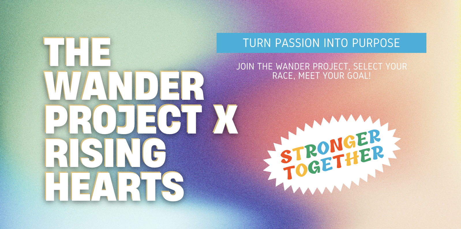 Raising money for a cause has never been easier! This year, we’re partnering with Wander Project to give you a fun way to support our heart work. Run, walk or jog in the 2025 / 2026 EVENT as a charity bib athlete, and a percentage of the funds you raise will come back to Rising Hearts. Wander Project’s goal is to help you inspire and engage your community by providing support and resources along your fundraising journey.